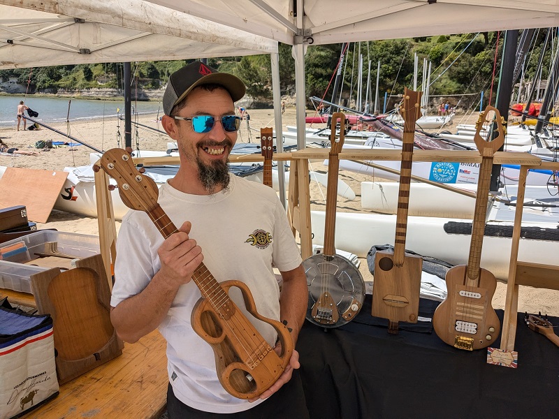 Il a commencé la lutherie sur le tard, d’abord en réalisant des cigarbox (des guitares ou ukulélés avec une caisse en boite de cigare). Son premier ukulélé traditionnel est sorti de l’atelier en 2022.
