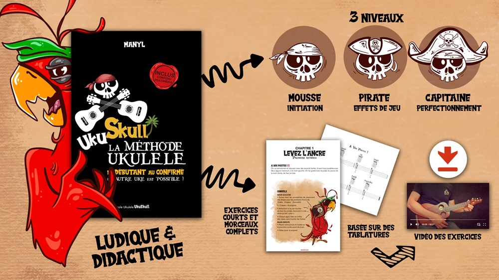 Lorsqu’un petit garçon pointe son nez, Manyl se met en off de musique. Mais pas de projets. Fabien créé « Uku Skull« , une école d’ukulélé, mais surtout une méthode d’apprentissage, à destination de débutants et confirmés.